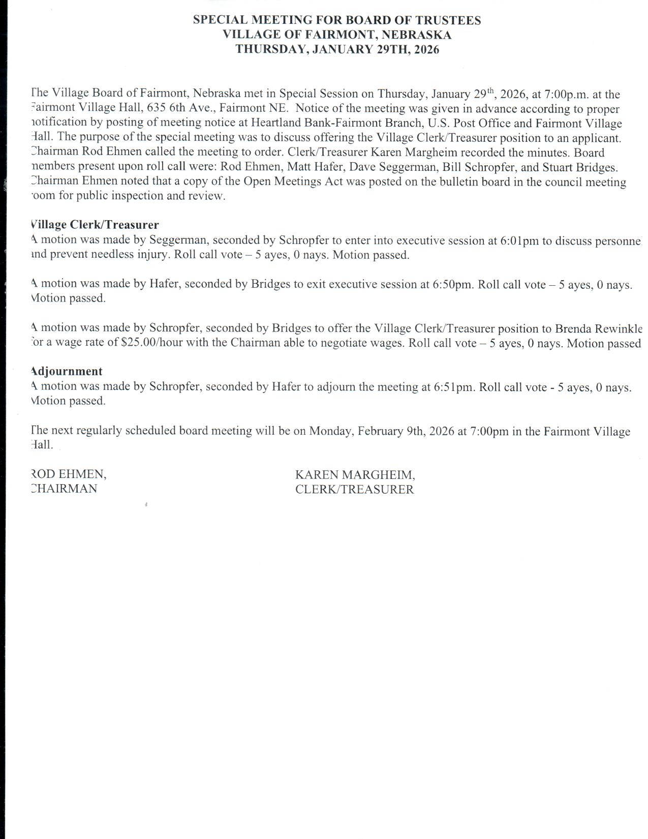 Jan. 29th, 2026 Special Meeting